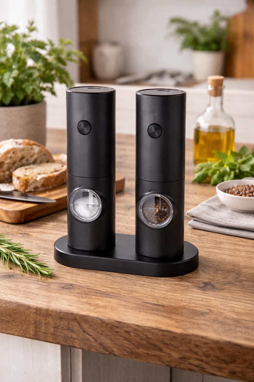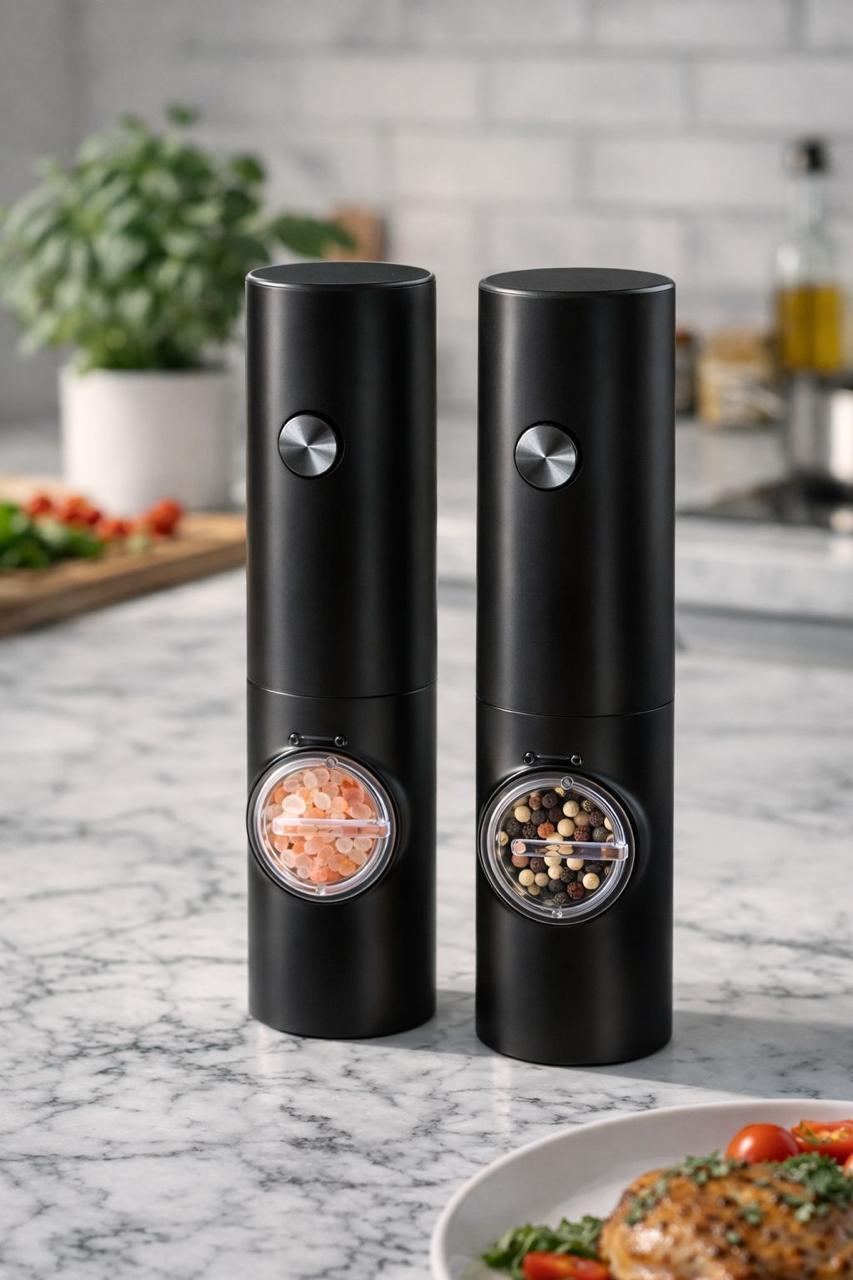 ¿Cansado de molinillos manuales que te cansan la mano? Este Set de Molinillos Eléctricos LUMAHOME muele pimienta y sal fresca al instante, liberando todo el aroma y sabor que los condimentos pre-molidos nunca te dieron.