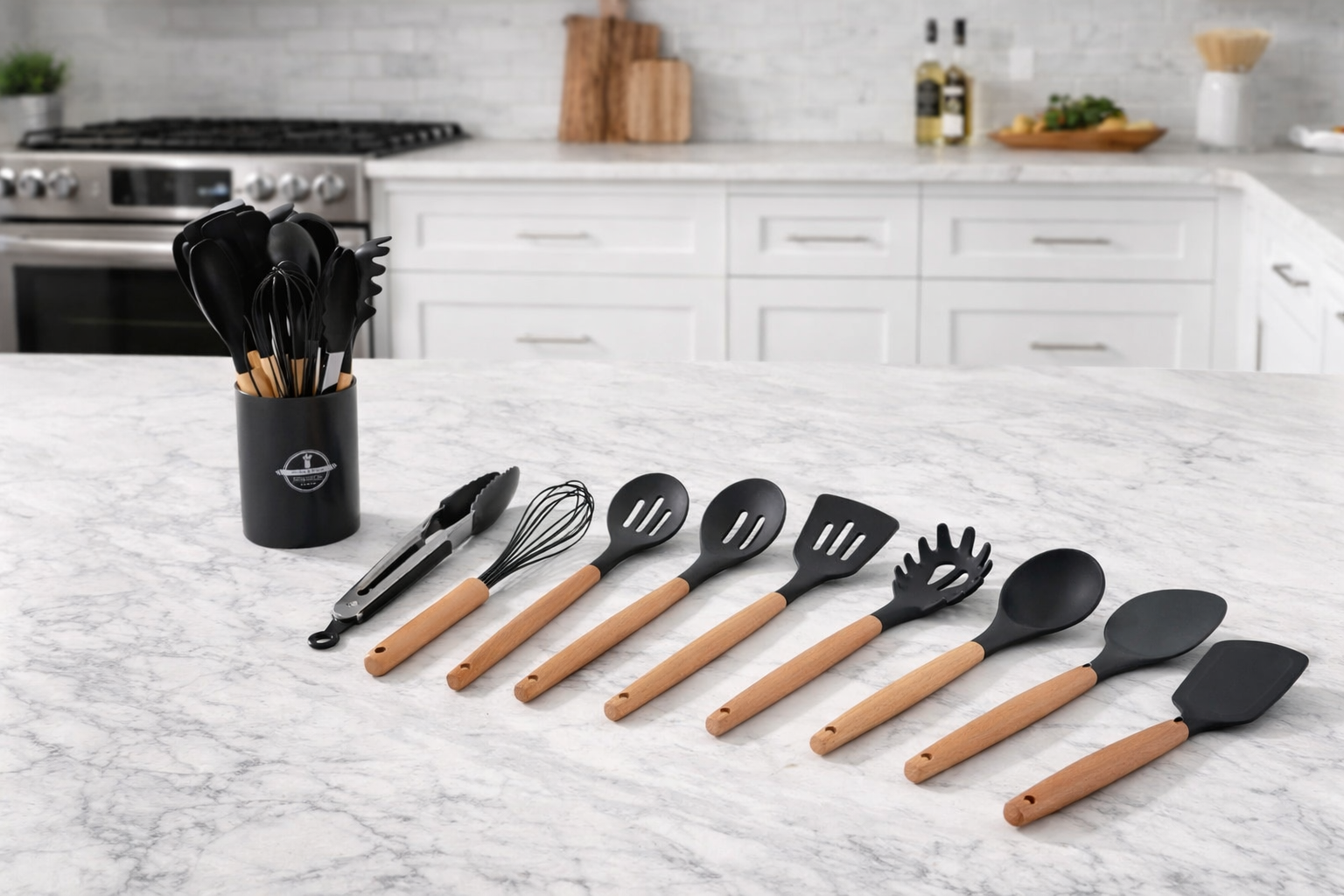 Este set de 12 utensilios de silicona ofrece una solución completa y práctica para cualquier cocina.